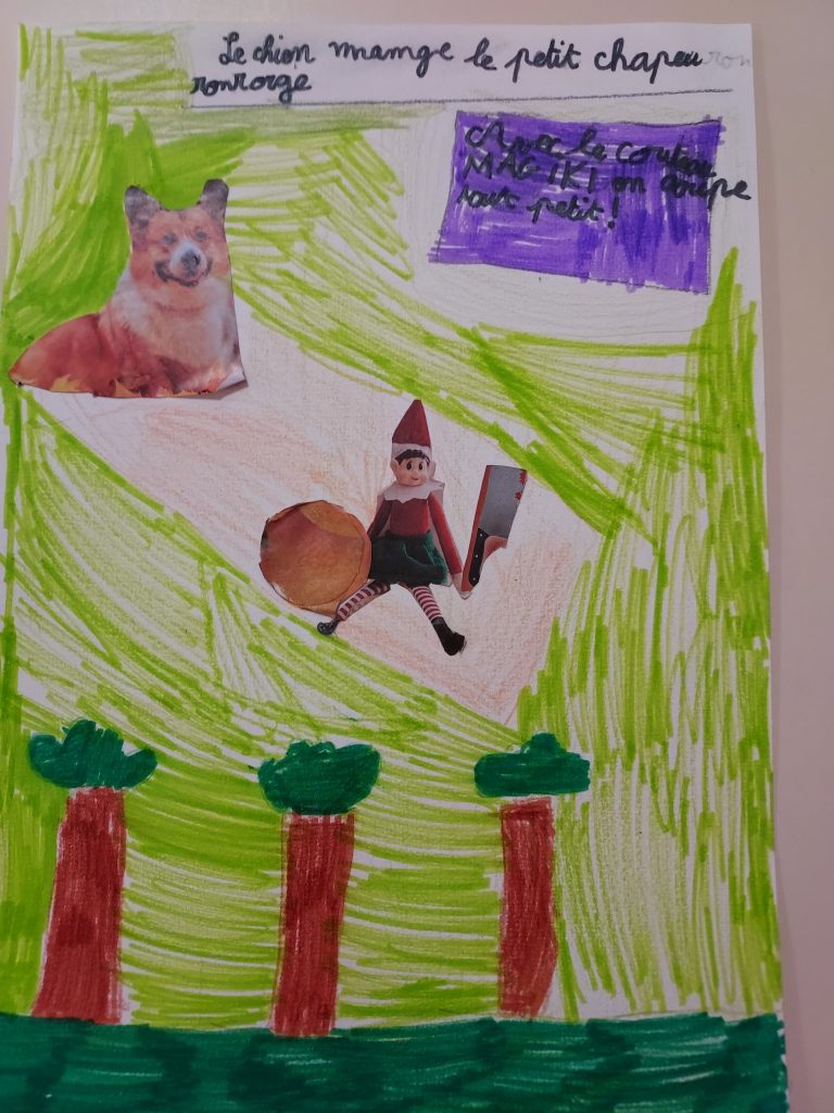 Lors de la première rencontre, nous avons écouté des versions des contes traditionnels qui étaient transformés en de nouvelles histoires. Par exemple, le conte de Boucle d’Or changé en la « vengeance des trois ours » qui faisaient des bêtises dans la maison de cette dernière. Mais était-ce vraiment la maison de Boucle d’Or ??? Puis, par petit groupe, nous avons choisi des albums parmi une collection de contes détournés que nous avons présentée à la classe.