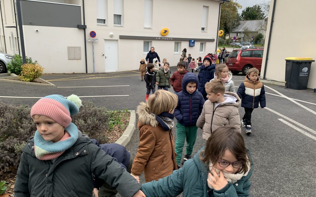 Mardi 12 novembre, nous sommes allés nous promener à Ligné pendant plus d’une heure pour prendre en photo les lieux que nous avions choisis pour montrer à nos correspondants du Mali. Nous avons pris des photos du terrain de foot, de la cour du collège, de la caserne de pompiers, de la bibliothèque, de la poste, de l’Eglise, de la mairie  … Nous sommes aussi allés chez le fleuriste, à la poste … Nous étions un peu fatigués à la fin et malheureusement mouillés ☹. Mais nous étions contents de pouvoir envoyer les photos à nos correspondants. Nous attendons leurs photos maintenant. C’était aussi l’occasion d’essayer de bien utiliser les directions « droite » et « gauche » et de nommer les lieux.