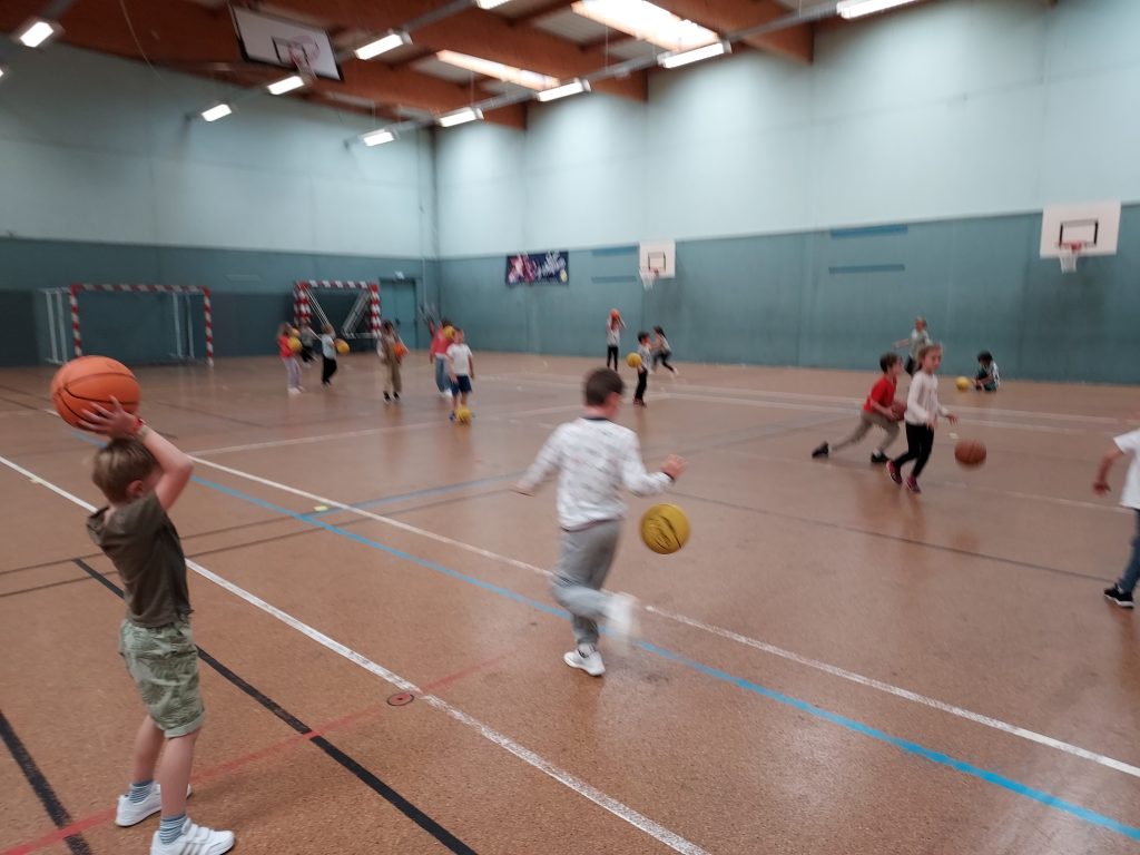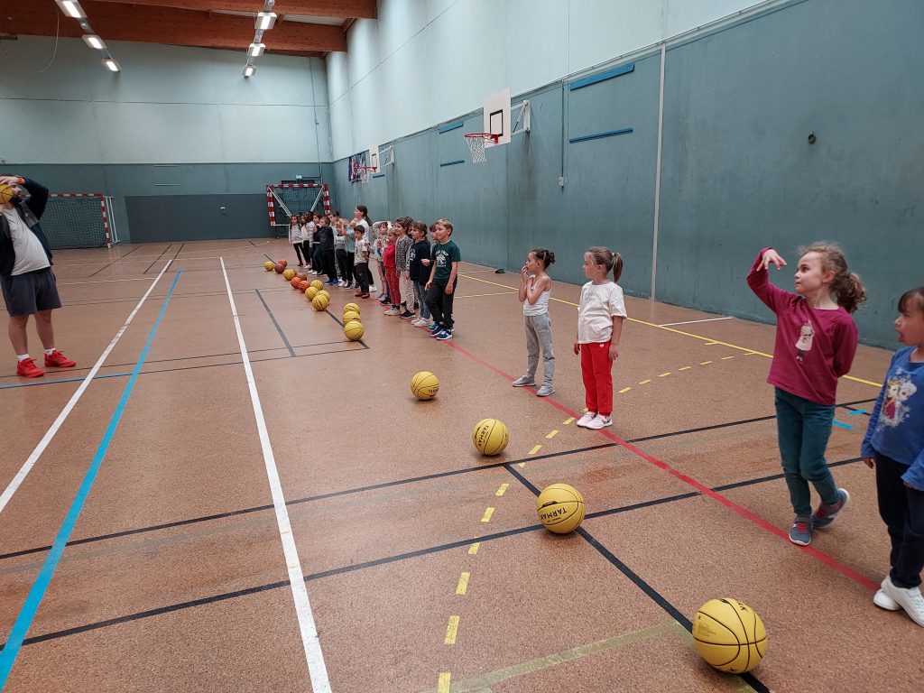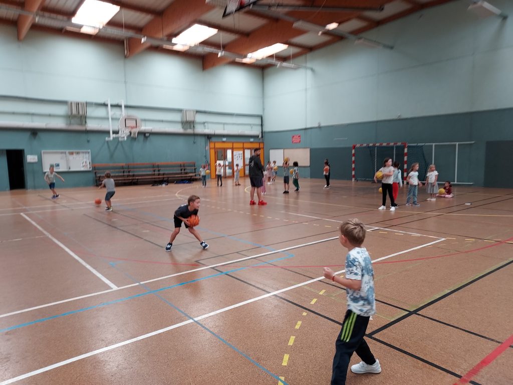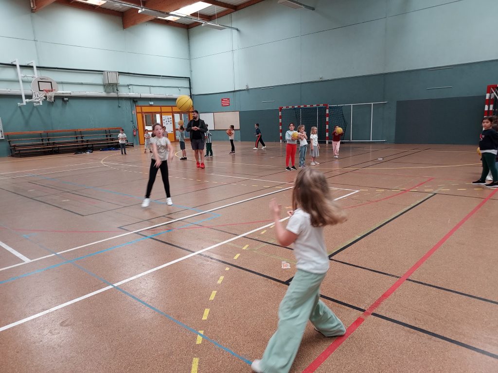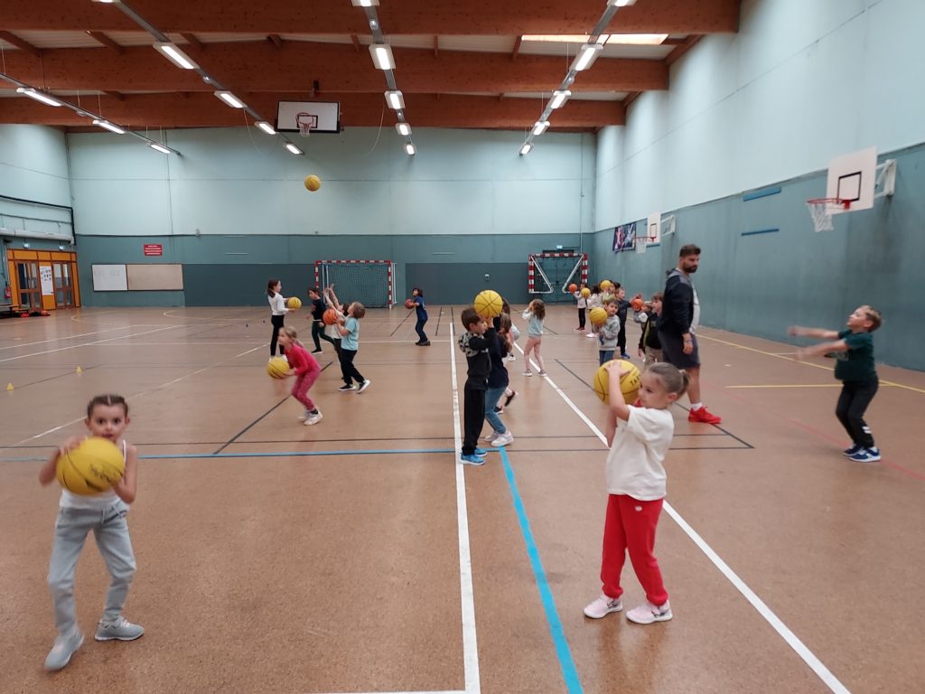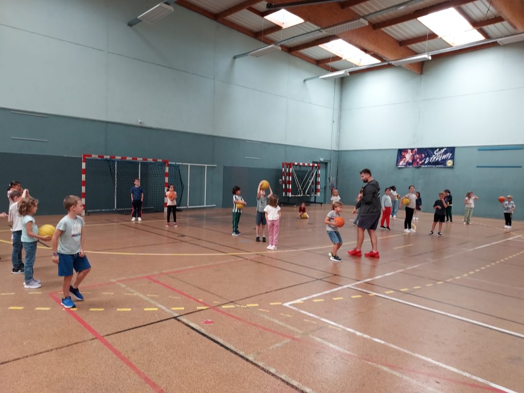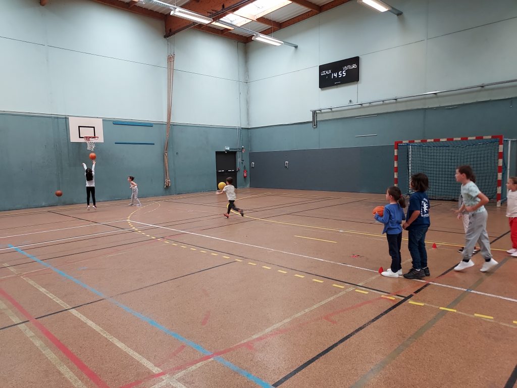 Durant les mois de septembre et d’octobre, nous avons fait du basket. Avec le partenariat du club de basket de Saint Mars du Désert, notre animateur Florian nous a appris à réaliser des passes, des dribbles et les gestes pour lancer au panier.